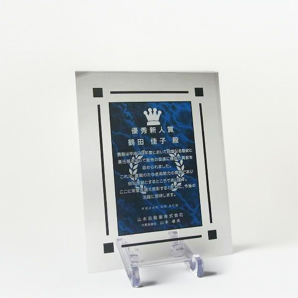 他の画像を見る 縦横対応・飾り枠付き。デザイン料込!オリジナルデザイン彫刻可能 MDF表彰楯・記念楯 飾枠付黒檀+マーブルプレート ブルー Lサイズ【オーダーメイドデザイン作成お任せください デザイン保管】(在庫切れにつき納期2ヶ月程度必要) カートに入れる お気に入りに登録する オリジナルデザイン対応 デザイン確認あり 1個〜注文可能 デザイン料無料 当店特別価格 ¥ 8,148 税込 (0)