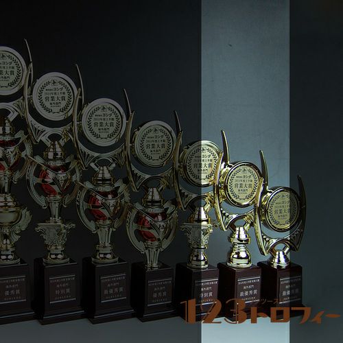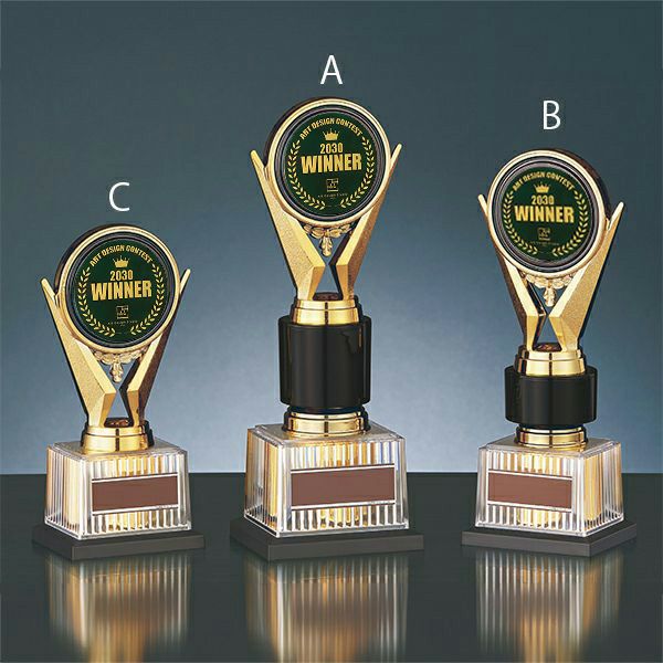 丸いメダル部分にオリジナルデザインを彫刻して制作できるセミオーダーメイドのトロフィー・表彰楯・メダルです。1個から作成できてデザイン料無料!会社(企業)や大会のロゴマーク・キャラクター、社章、オリジナルイラストを樹脂製のメダル部分に自由にデザインできます。
