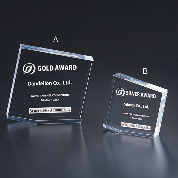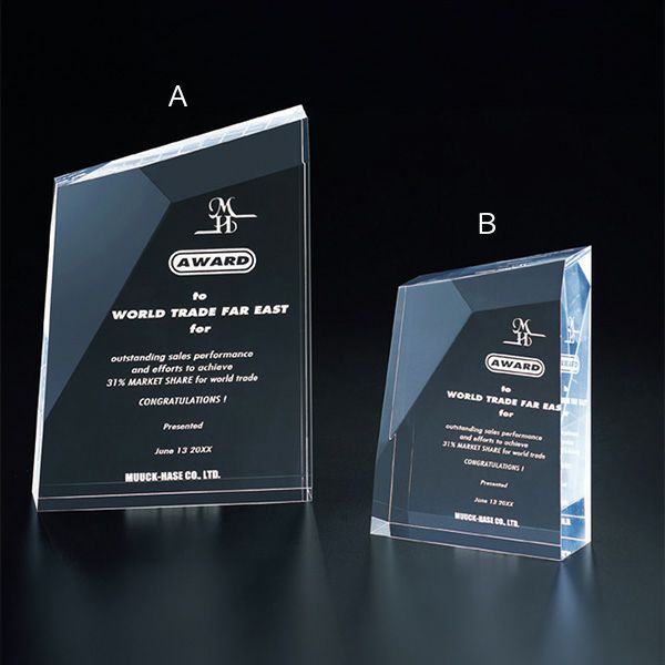 他の画像を見る アクリルトロフィー L10-03AB 高さ128mm~94mm デザイン無料 納期2週間程度 詳細を見る お気に入りに登録する オリジナルデザイン対応 デザイン確認あり デザイン料無料 当店特別価格 ¥ 18,700 税込 (0)