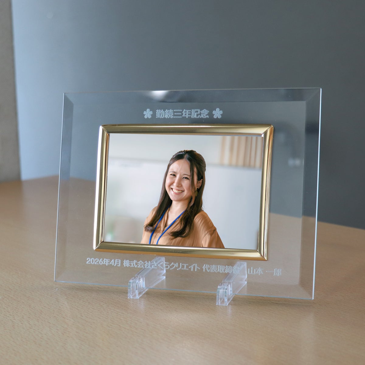 他の画像を見る 名入れ記念品を簡単に作成!人気のオリジナルフォトフレーム 【名入れ彫刻料込み】オリジナルガラスフォトフレーム L判 セルフデザインコース【誕生日 結婚祝い 出産祝い 還暦祝い 記念品】 詳細を見る お気に入りに登録する デザイン確認あり 1個〜注文可能 デザイン料無料 当店特別価格 ¥ 3,850 税込 (0)