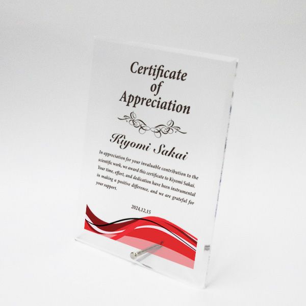 他の画像を見る 社内表彰や認定証・学会表彰に人気 MDF表彰楯・記念楯 新カリン Sサイズ【オーダーメイドデザイン作成お任せください デザイン保管】remove-item-zyxwvu カートに入れる お気に入りに登録する オリジナルデザイン対応 デザイン確認あり 1個〜注文可能 デザイン料無料 当店特別価格 ¥ 5,170 税込 5.00 (3)