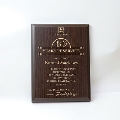 MDF表彰楯・記念楯 ダークオーク Sサイズ【オーダーメイドデザイン作成お任せください デザイン保管】remove-item-zyxwvuのレビュー