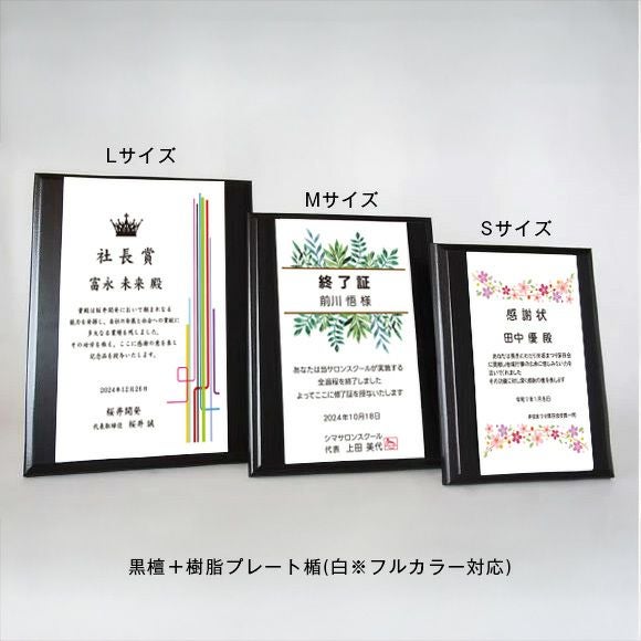 他の画像を見る オリジナルデザイン対応 デザイン確認あり 1個〜注文可能 デザイン料無料 表彰状や感謝状、社内表彰や学会表彰に人気 MDF表彰楯・記念楯 飾枠付黒檀+樹脂プレート Mサイズ【オーダーメイドデザイン作成お任せください デザイン保管】 カートに入れる お気に入りに登録する (0) 当店特別価格 ¥ 7,639 税込