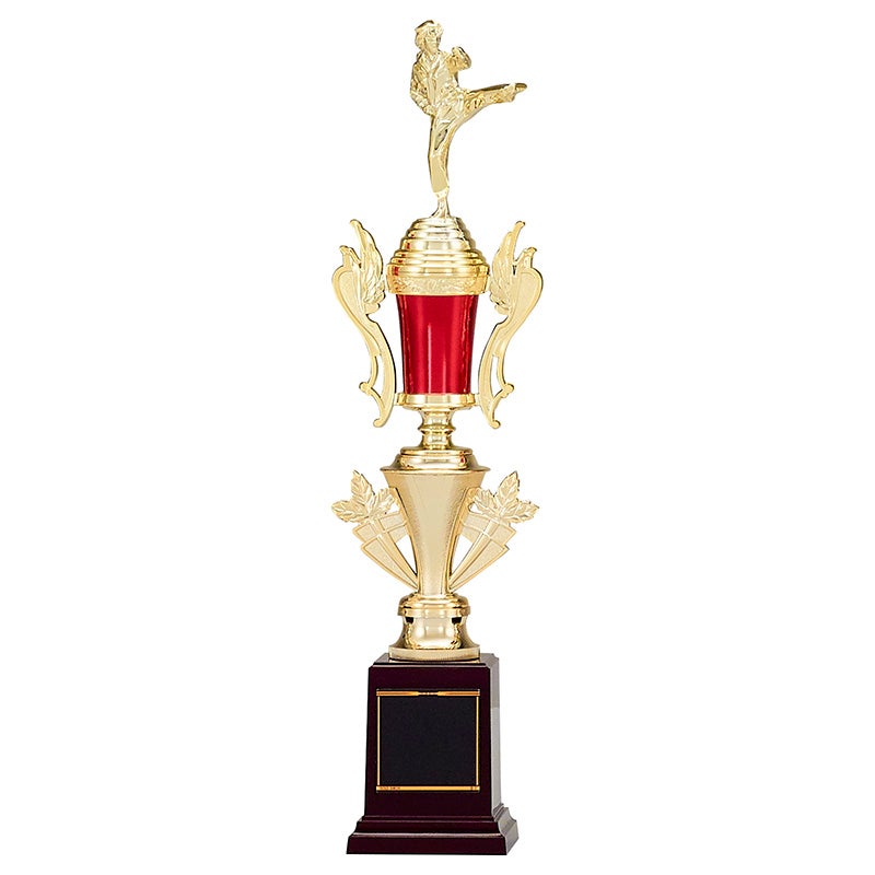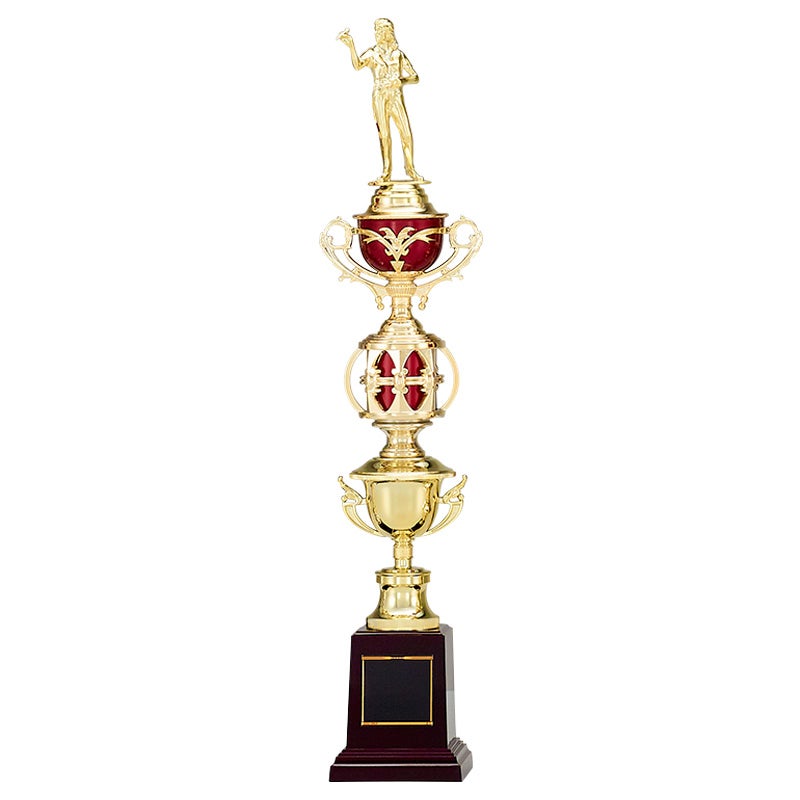 他の画像を見る 1個〜注文可能 デザイン確認はメール添付(修正不可) デザイン料無料 ロゴマークを入れる場合【特注プレート】はこちら 彫刻レイアウト・文字書体見本はこちら ゴールドにレッドが映える豪華な4本柱トロフィー。紅白リボン付 トロフィー T3006D 高さ830mm《H-5》選べる競技132種類 名入れ彫刻無料 ゴルフコンペ 野球 サッカー バレー バスケットボール スポーツ大会 優勝記念品 詳細を見る お気に入りに登録する (0) 当店特別価格 ¥ 19,800 税込