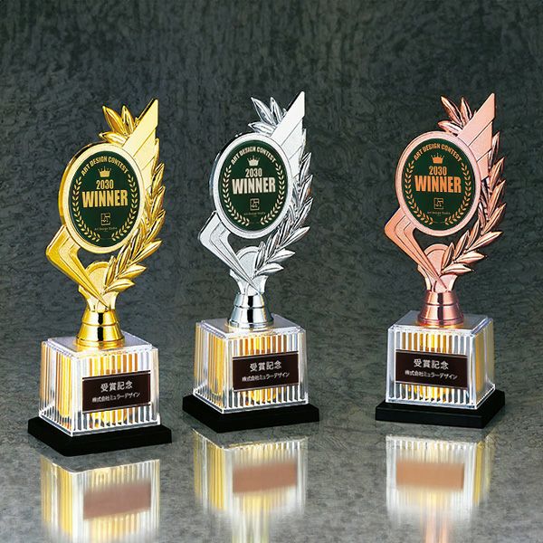 他の画像を見る オリジナルデザイン対応 デザイン確認あり 1個〜注文可能 デザイン料無料 ロゴマークや社章も彫刻可能。月桂樹がアクセントのかっこいいトロフィー 【オリジナルデザインができるトロフィー】ゴールド BRZ-4672 高さ210mm 《#B25》 デザイン料無料 詳細を見る お気に入りに登録する (0) 当店特別価格 ¥ 7,700 〜 ¥ 7,920 税込 当店特別価格 ¥ 税込