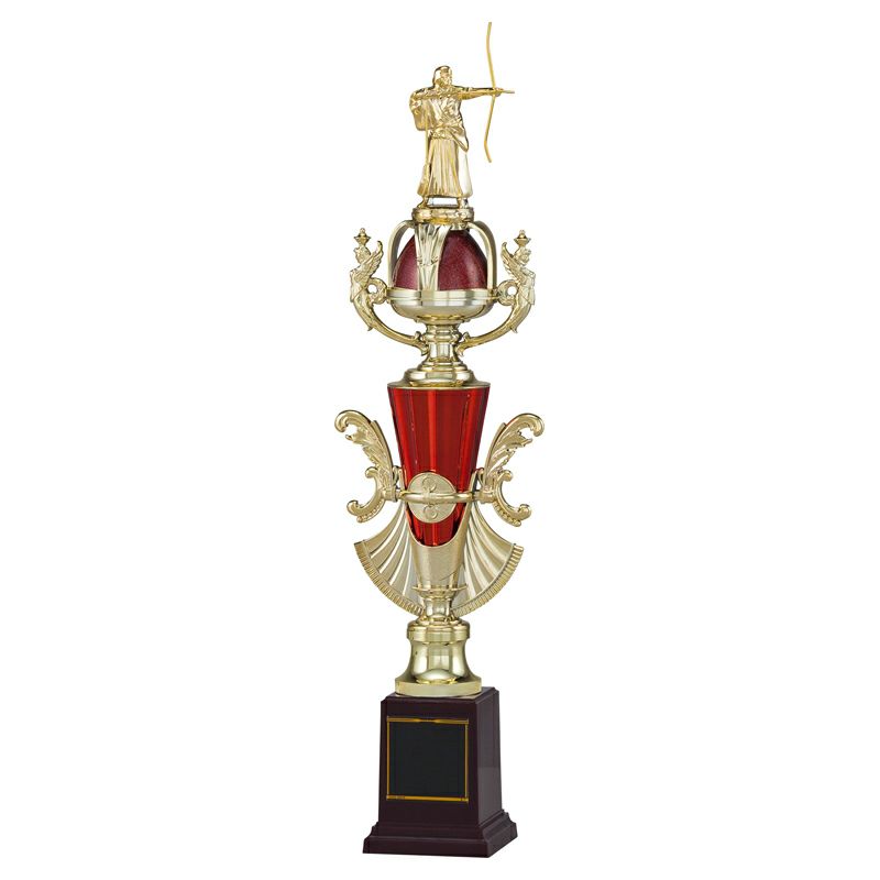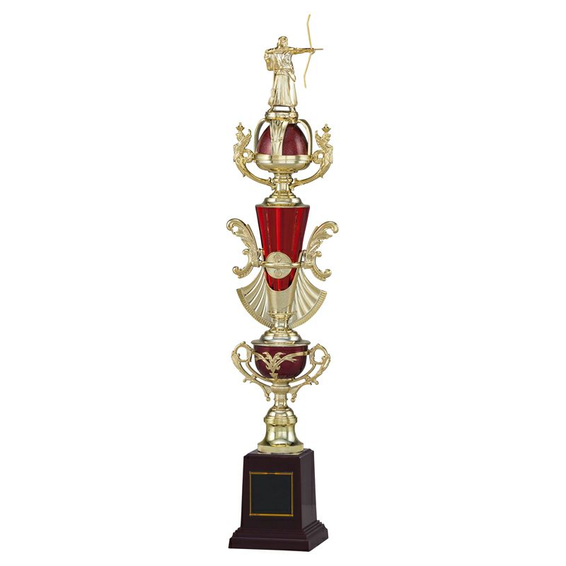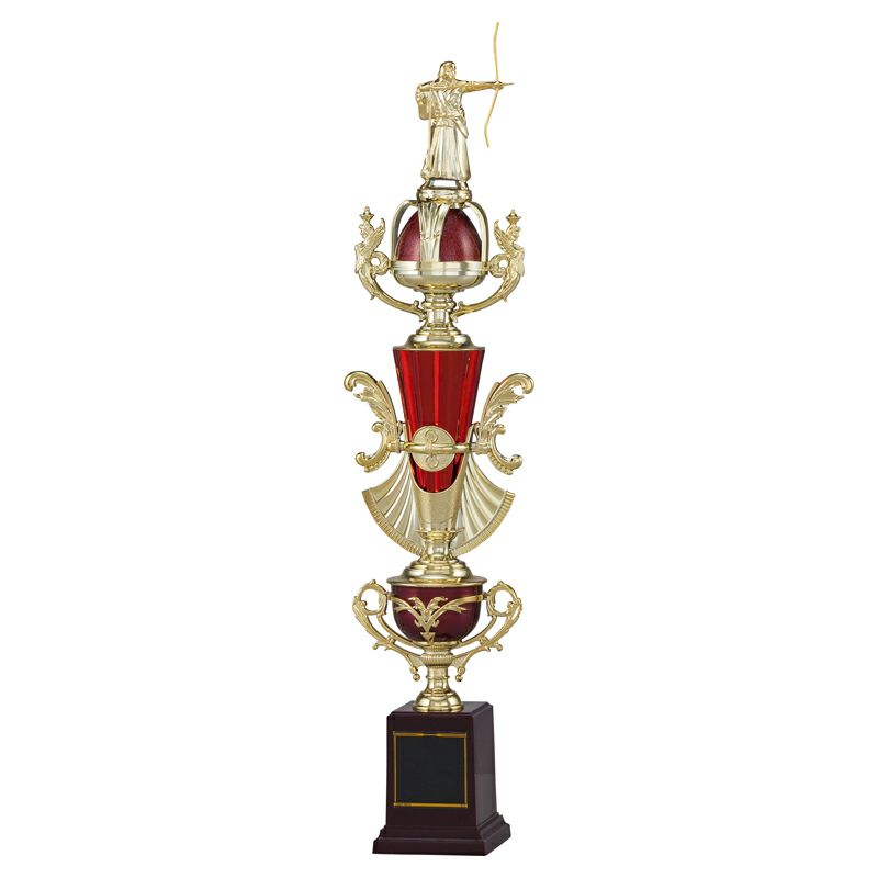 他の画像を見る デザイン確認あり 1個〜注文可能 デザイン料無料 送料無料 ロゴマークを入れる場合【特注プレート】はこちら 彫刻レイアウト・文字書体見本はこちら ゴールドにレッドが映える豪華な4本柱。優勝トロフィーに人気。紅白リボン付 トロフィー T1006A ★高さ1060mm《H-5》選べる競技132種類★名入れ彫刻無料 ゴルフコンペ 野球 サッカー バレー バスケットボール スポーツ大会 優勝記念品 詳細を見る お気に入りに登録する (0) 当店特別価格 ¥ 31,350 税込