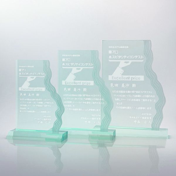 他の画像を見る オリジナルデザイン対応 デザイン確認あり 1個〜注文可能 デザイン料無料 エレガントな波のデザインの表彰楯にオリジナルデザインができる アクリルトロフィー ウォーターフォールジェード 89WTR-Jade 詳細を見る お気に入りに登録する (0) 当店特別価格 ¥ 14,300 〜 ¥ 18,700 税込 当店特別価格 ¥ 税込